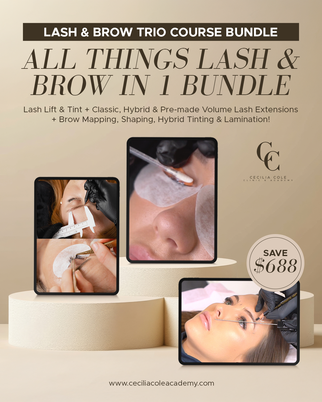 Upgrade your beauty career with the Lash & Brow Trio Bundle from Cecilia Cole Academy — the ultimate online training package for aspiring lash and brow artists wanting to learn Lash Extensions, Lash Lift & Tint, and Brow Mastery (Waxing, Sculpt, Lamination & Hybrid Tint) all in one place.